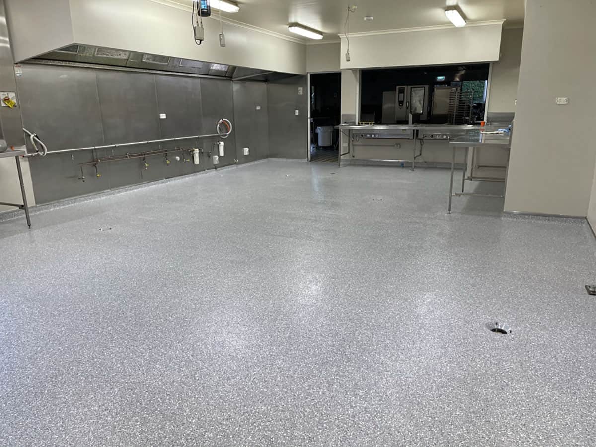 Gold Coast commercial kitchen epoxy flooring that resists spills, heat and wear. An easy to clean, hygienic, hard-wearing surface ideal for all kitchen spaces.