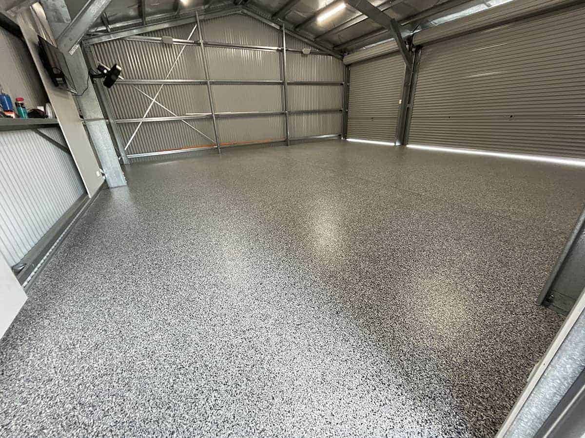 Absolutely. Epoxy flake flooring performs well in large sheds exposed to temperature changes, dust, vehicle use and machinery. It seals and protects the concrete while resisting cracking, moisture ingress and damage from heavy loads or equipment.